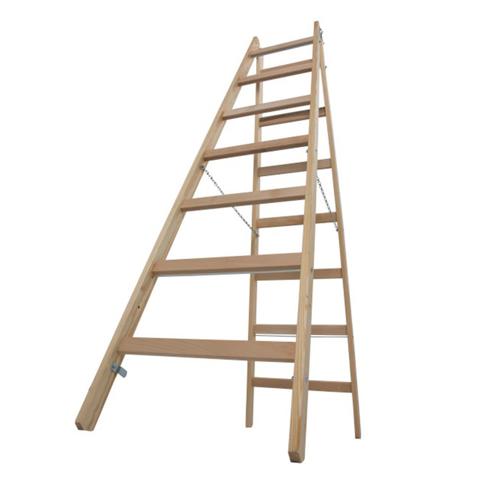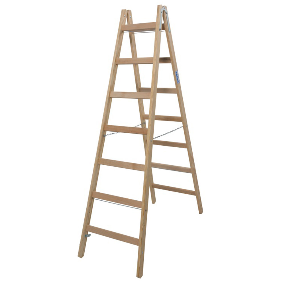 Предназначена для выполнения строительных, ремонтных, отделочных или иных видов работ, когда необходимо произвести какие-либо действия на высоте. Востребована малярами и электриками.rnДвухсторонняя стремянка с перекладинами. rnПрочные стальные шарниры. Страховка цепями от саморасхождения. Фиксаторы для безопасной транспортировки. Боковины из высококачественных пород древесины. Непроводящий ток материал. Перекладины из твердых пород дерева. Экологически безвредная древесина. Продукт сертифицирован в строгом соответствии с ГОСТ 24258-88 и DIN EN-131.