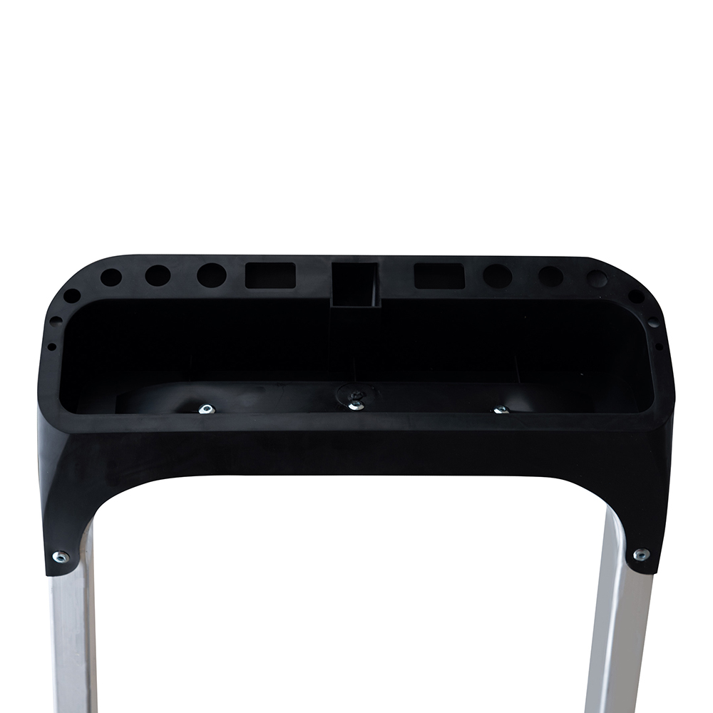 Предназначена для выполнения строительных, ремонтных, отделочных или иных видов работ, когда необходимо произвести какие-либо действия на высоте.rnВ основании стремянки прочная рама из алюминиевого профиля прямоугольного сечения. Пластиковые наконечники препятствуют скольжению, и обеспечивают отличную устойчивость. Многократное клепаное соединение ступеней с рамой обеспечивает исключительную надежность и безопасность при работе на стремянке. Имеет десять ступеней шириной 130 мм, что позволяет стопе комфортно размещаться на лестнице.rnРабочая высота – это параметр, рассчитываемый путем сложения высоты верхней секции лестницы/стремянки и роста человека с вытянутой вверх рукой (в среднем, два метра).