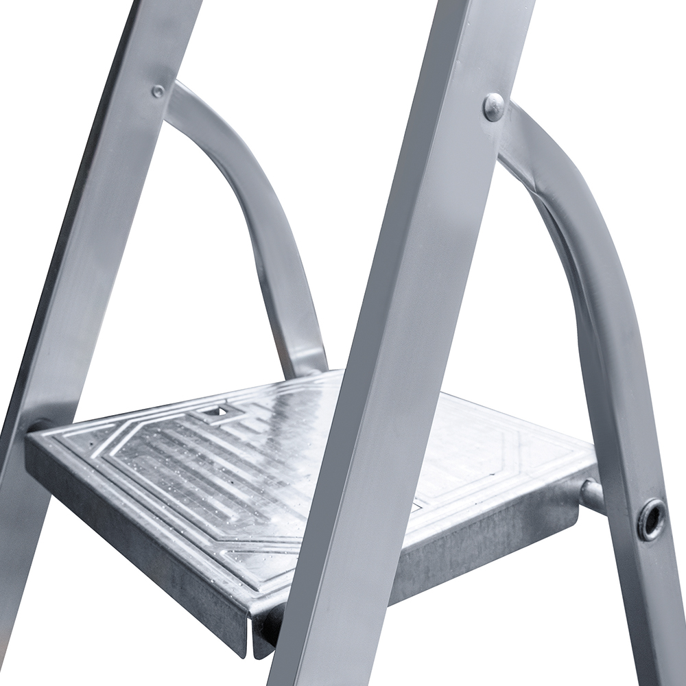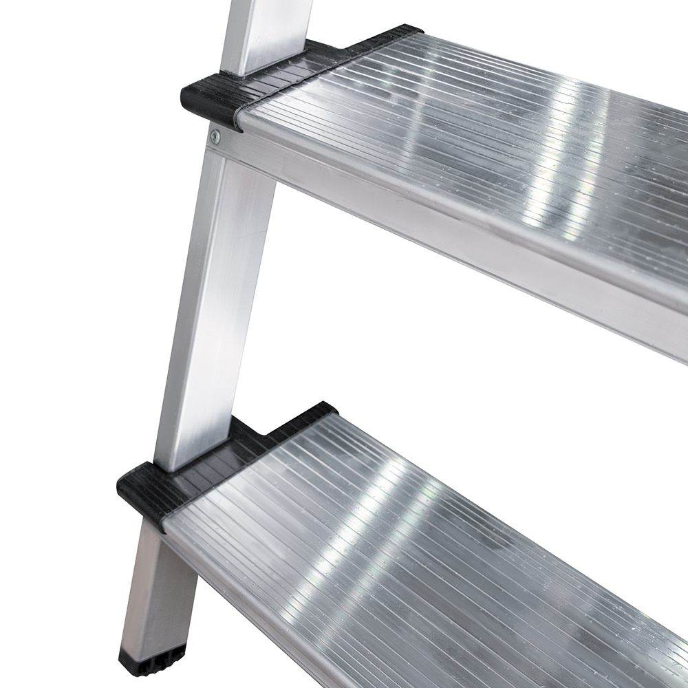 Предназначена для выполнения строительных, ремонтных, отделочных или иных видов работ, когда необходимо произвести какие-либо действия на высоте.rnВ основании стремянки прочная рама из алюминиевого профиля прямоугольного сечения. Пластиковые наконечники препятствуют скольжению, и обеспечивают отличную устойчивость. Многократное клепаное соединение ступеней с рамой обеспечивает исключительную надежность и безопасность при работе на стремянке. Имеет шесть ступеней шириной 130 мм, что позволяет стопе комфортно размещаться на лестнице.rnРабочая высота – это параметр, рассчитываемый путем сложения высоты верхней секции лестницы/стремянки и роста человека с вытянутой вверх рукой (в среднем, два метра).