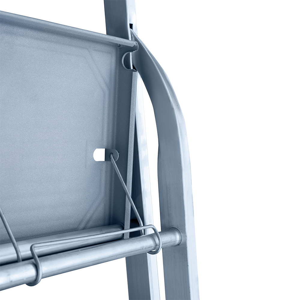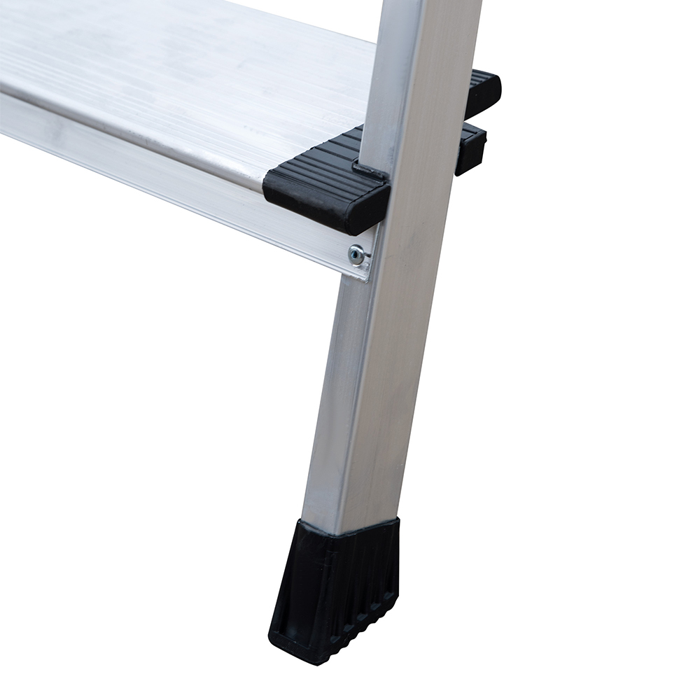 Предназначена для выполнения строительных, ремонтных, отделочных или иных видов работ, когда необходимо произвести какие-либо действия на высоте.rnВ основании стремянки прочная рама из алюминиевого профиля прямоугольного сечения. Пластиковые наконечники препятствуют скольжению, и обеспечивают отличную устойчивость. Многократное клепаное соединение ступеней с рамой обеспечивает исключительную надежность и безопасность при работе на стремянке. Имеет деявять ступеней шириной 130 мм, что позволяет стопе комфортно размещаться на лестнице.rnРабочая высота – это параметр, рассчитываемый путем сложения высоты верхней секции лестницы/стремянки и роста человека с вытянутой вверх рукой (в среднем, два метра).