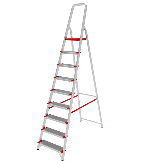 Предназначена для выполнения строительных, ремонтных, отделочных или иных видов работ, когда необходимо произвести какие-либо действия на высоте.rnВ основании стремянки прочная рама из алюминиевого профиля прямоугольного сечения. Пластиковые наконечники препятствуют скольжению, и обеспечивают отличную устойчивость. Многократное клепаное соединение ступеней с рамой обеспечивает исключительную надежность и безопасность при работе на стремянке. Имеет девять ступеней шириной 130 мм, что позволяет стопе комфортно размещаться на лестнице.rnРабочая высота – это параметр, рассчитываемый путем сложения высоты верхней секции лестницы/стремянки и роста человека с вытянутой вверх рукой (в среднем, два метра).