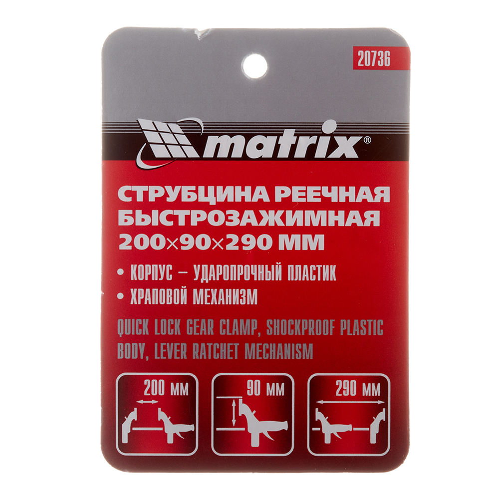 Струбцина реечная быстрозажимная Matrix предназначена для временной фиксации деталей при их обработке.rnКорпус из ударопрочного пластика. Рычажный храповой механизм.