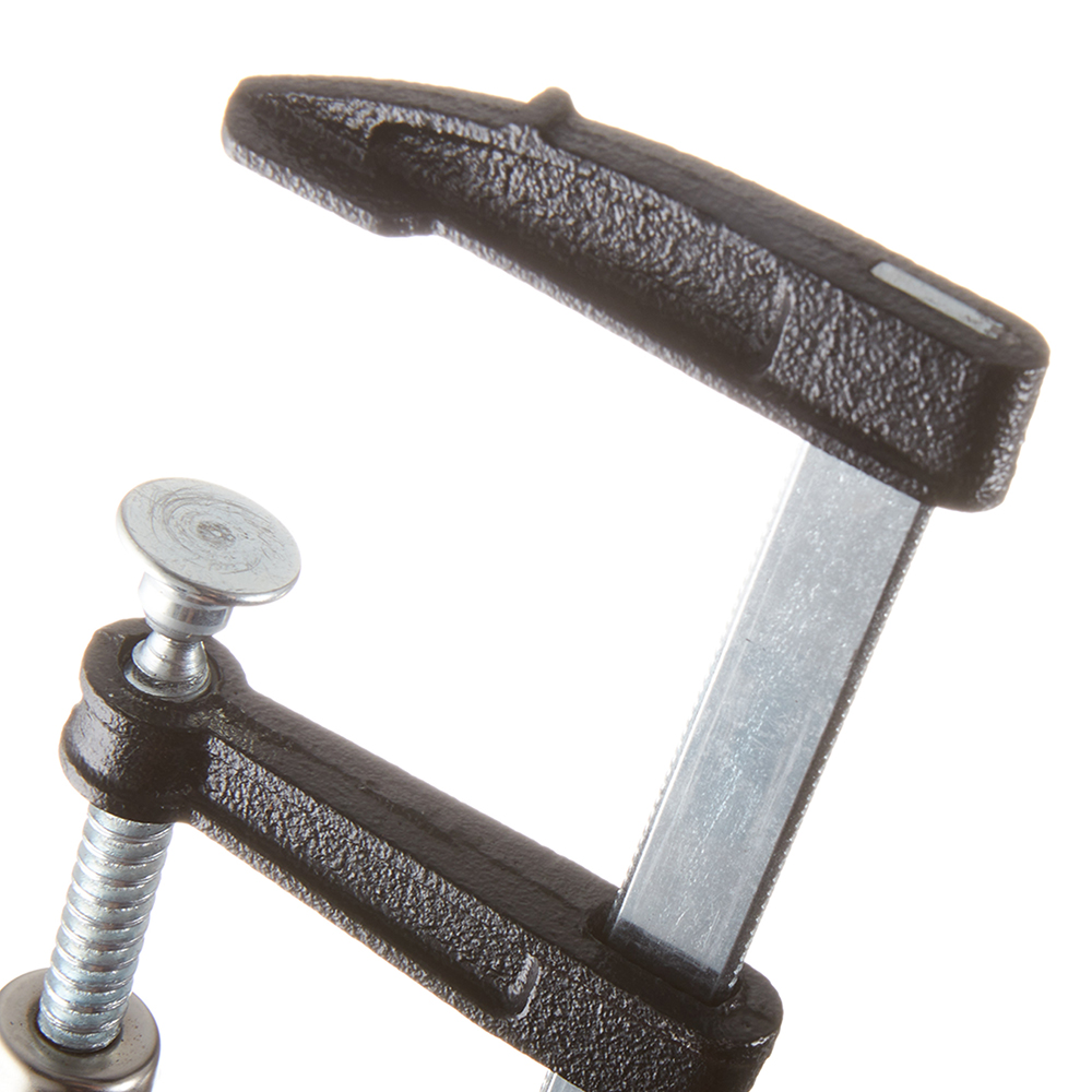 Струбцина F-образная Spsrta предназначена для фиксации деталей при обработке и сборке.rnОдин из кронштейнов установлен на направляющей жестко, другой перемещается для регулировки захвата и оснащен винтовым зажимом.rnГубки снабжены накладками для защиты обрабатываемых предметов от повреждений.rnРукоятка деревянная.