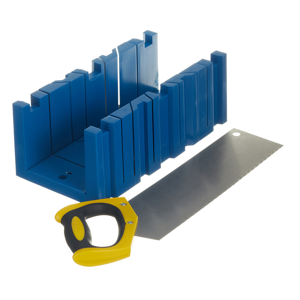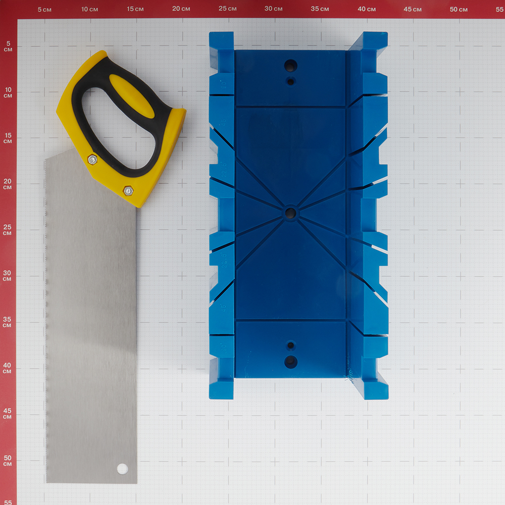 Предназначено для распиливания плинтусов, багетных планок, досок для дверных косяков и прочего под необходимым углом. Изготовлено из легкого и высокопрочного пластика с прорезями для направления ножовки под углом 45, 90 или 135⁰. В комплект входит ножовка.