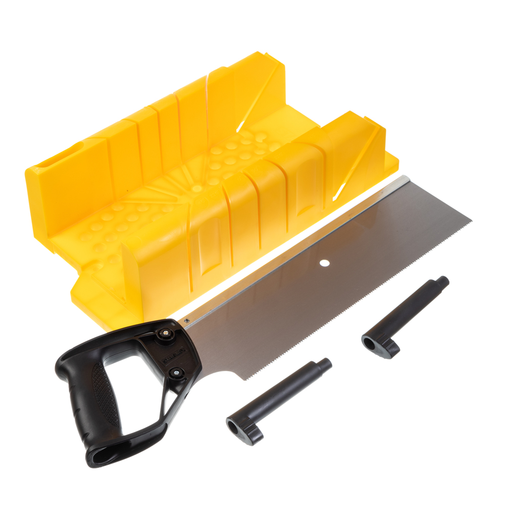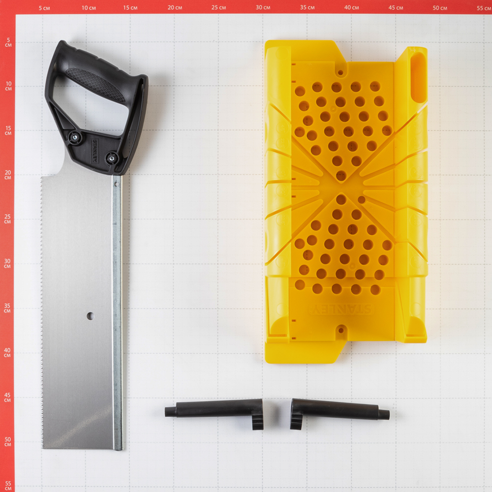 Предназначено для пиления деревянных деталей под углами 45º и 90º. Конструкция выполнена из ударопрочного полистирола методом инжекционного литья, имеется ножовка и эксцентриковые фиксаторы для крепления заготовки. Имеет мини-отсек для хранения фиксаторов и карандашей.
