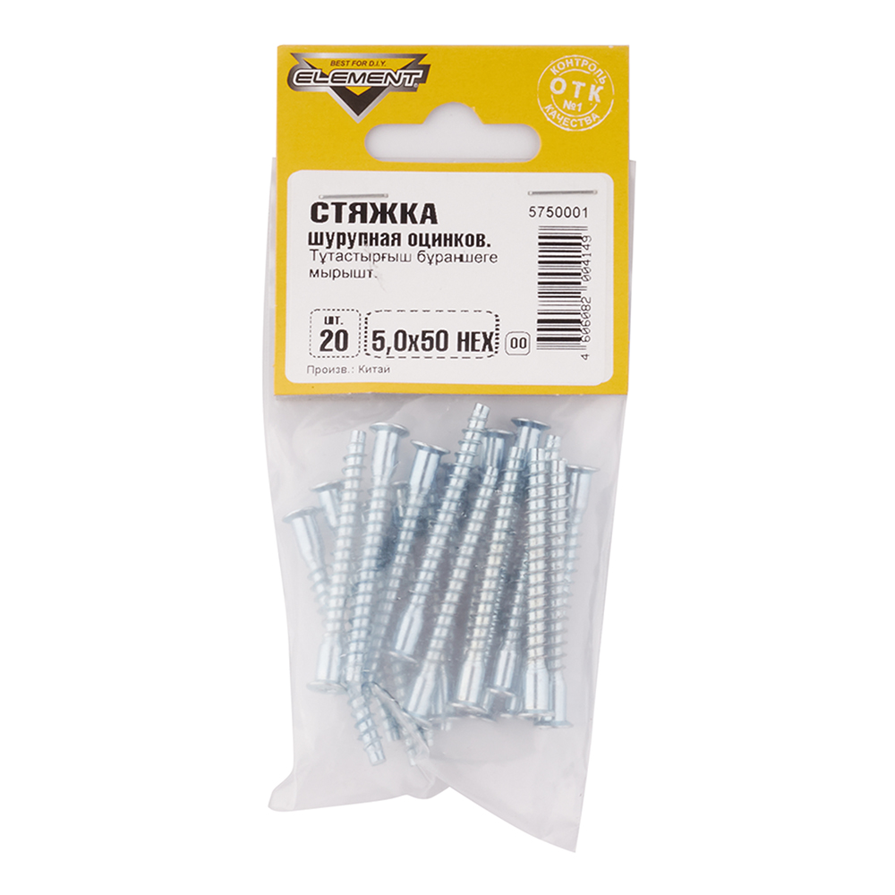 Стяжка шурупная оцинкованная 5х50 мм потайная головка HEX (20 шт.)
