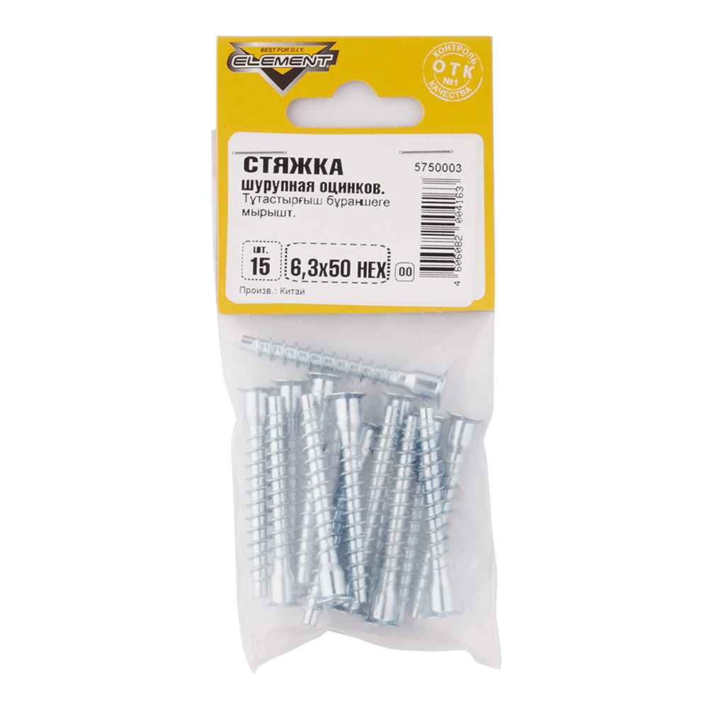 Стяжка шурупная оцинкованная 6,3х50 мм потайная головка HEX (15 шт.)