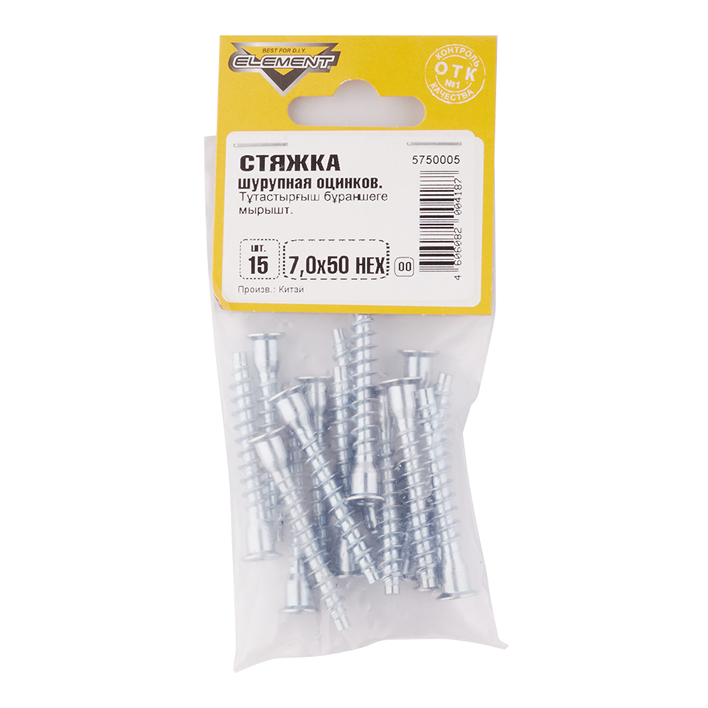 Стяжка шурупная оцинкованная 7х50 мм потайная головка HEX (15 шт.)