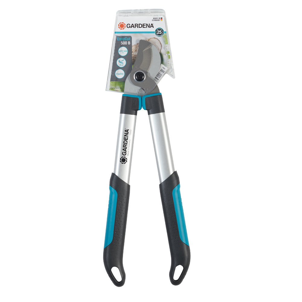 Сучкорез GARDENA EasyCut 500 B – это классический сучкорез для обрезки зеленых веток. Благодаря небольшому весу и превосходному действию рычага, для резки необходимо совсем небольшое усилие. Кроме того, амортизаторы из специального мягкого пластика защитят Ваши суставы. Заточенные лезвия с защитным покрытием гарантируют аккуратный срез. Гарантия – 25 лет.rnАллюминивые рукоятки с элементами из мягкого пластика предотвращают соскальзывание и гарантируют простоту в обращении и безопасную работу.rnАмортизаторы из особого пластика защищают запястьяrnДва лезвия скользят мимо друг друга, оставляя после себя точный и чистый срез. Поэтому сучкорезы EasyCut идеально подходят для резки свежих веток.