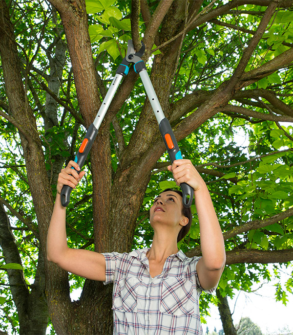 Регулируемые рукоятки обеспечивают превосходную рычажную передачу, уменьшая требуемые для резки усилия. Кроме того, легко достигает более высокие ветви.
