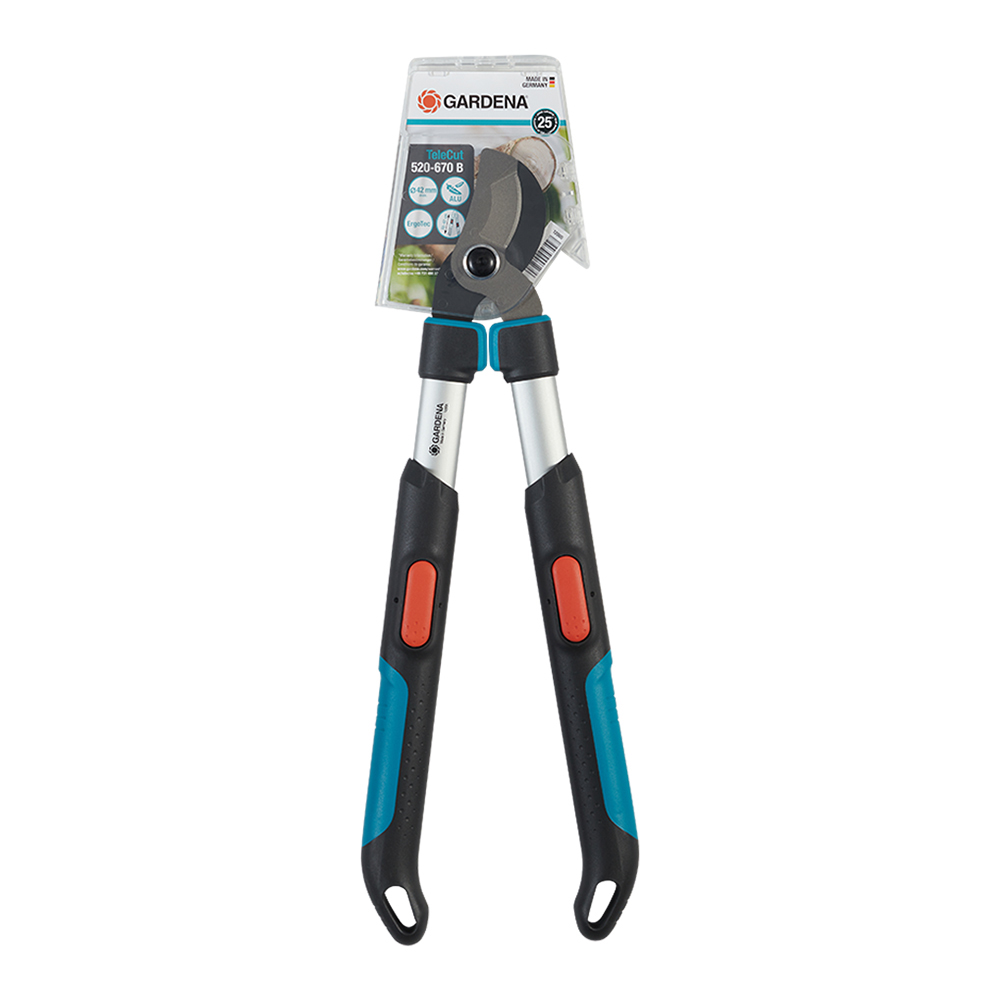 ДвухлезвийныйrnПодходит для обрезки зеленых ветокrnСменные лезвияrnМакс. диаметр сучьев 42 ммrnУвеличенный радиус действия благодаря телескопические рукоятки с регулировкой длины от 520 до 670 ммrnКурок для изменения длины рукояток удобно располагается рядом с захватом для рукЛезвия с прецезионной заточкой, покрытие от налипания, рукоятки с дополнительными мягкими элементами, амортизатор, алюминиевые ручки-рычаги каплевидной формы на конце. Сделано в Германии. 25 лет гарантии.