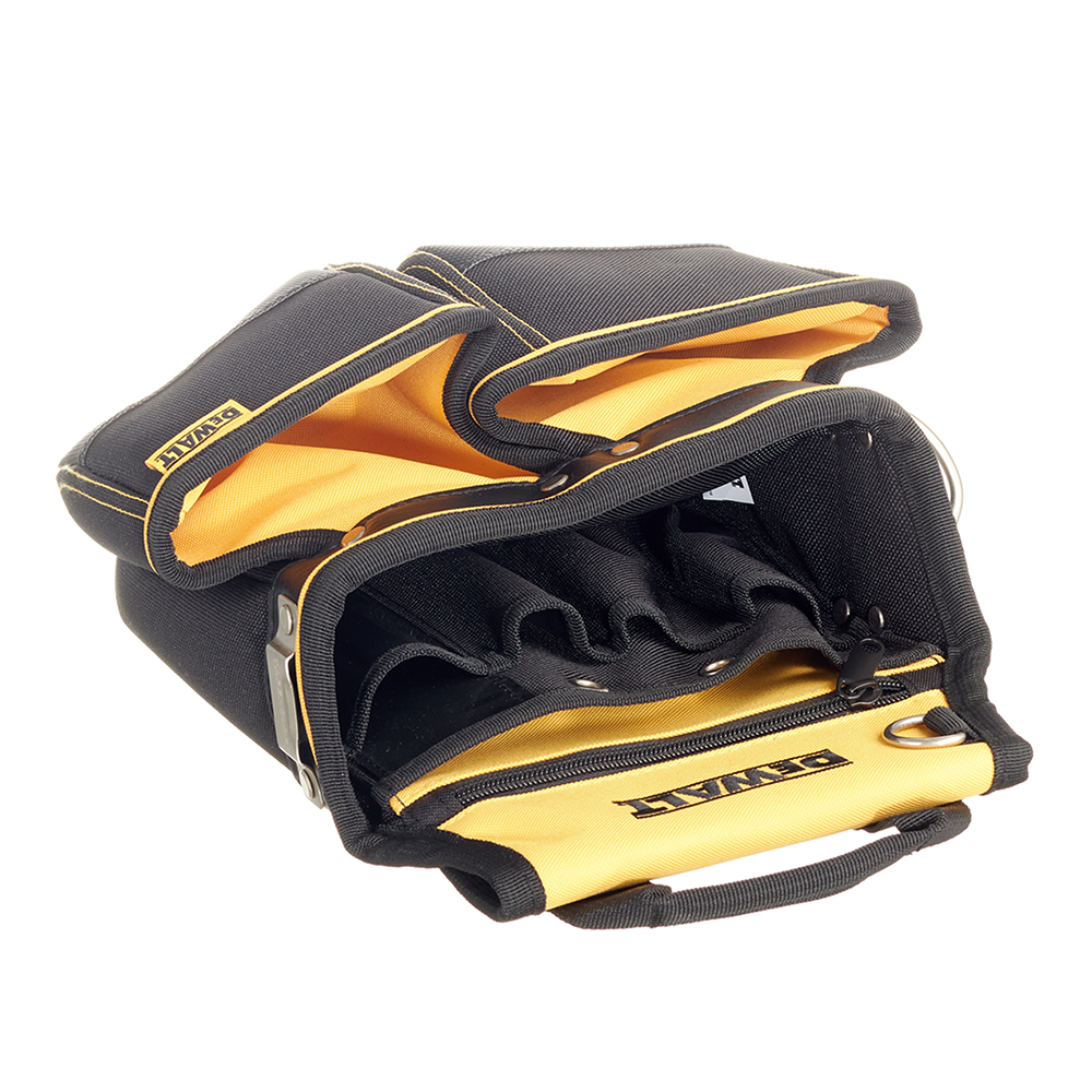 Сумка для инструмента DEWALT. Предназначена для хранения и транспортировки инструмента. Карманы и крепления для максимальной организации инструментов и мелких деталей. Крепкая и прочная полиэфирная ткань с плотностью 1200 денье. Дополнительное укрепление металлическими заклепками и кожей. Карманы и петли различных размеров для максимально удобной организации инструментов и мелких деталей. Большой карман на молнии. Специальный карман и петля для безопасной переноски пилы. Специальное металлическое кольцо для молотка. Встроенный держатель рулетки. Сумка дополнительно усилена металлическими заклепками и кожанными вставками в местах трения и напряжения. Внешние кожанные петли для отверток.