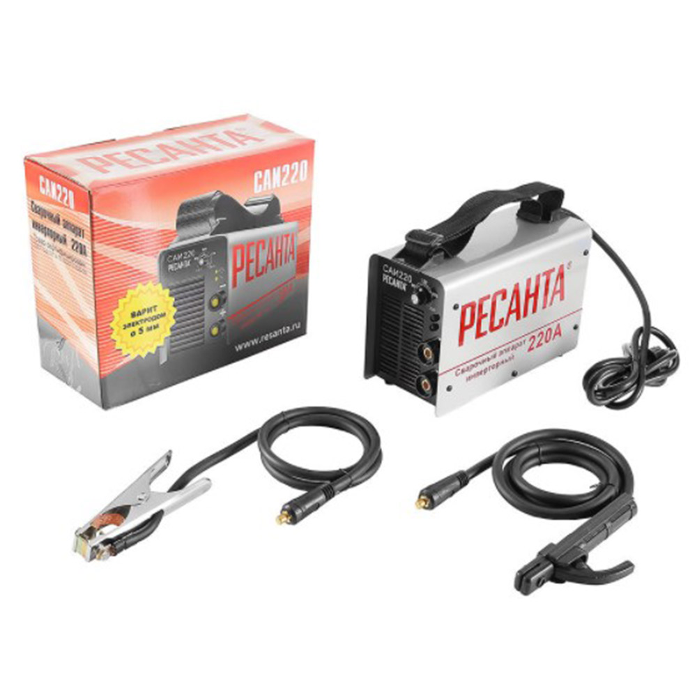 Инверторный сварочный аппарат Ресанта САИ-220 подходит для сварки металлических конструкций постоянным током покрытым электродом до 5 мм. Сварочный ток регулируется от 10 до 220 А ровных сварных швов и для более точной работы.rnОдна из самых оптимальных моделей с прекрасным соотношением габаритов и мощности. Аппарат простой в использовании, не требует специальных знаний, так что разобраться с ним не стоит и труда даже новичку. Широкий ремень позволяет удобно носить аппарат на плече.rnЭлектроника сварочного аппарата плавно регулирует ток, что позволяет проводить сварочные работы различной сложности.rnАппарат подключается к обычной однофазной розетке с напряжением 220В, не чувствителен к перепадам напряжения сети.rnБез проблем справляется с металлическими конструкциями толщиной до 5 мм, не теряя мощности и расходуя минимум электроэнергии.rnКомплектация Инверторный сварочный аппарат – 1 шт,Электрододержатель в сборе – 1 шт, Клемма заземления в сборе – 1 шт.,Руководство по эксплуатации – 1 шт