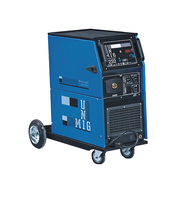 Сварочный аппарат “Unimig 250” трансформаторного типа для полуавтоматической сварки с газом и без газа в режимах MIG – MAG – MOG. Оснащён микропроцессорным управлением. Режим MIG-MAG – полуавтоматическая электродуговая сварка в среде защитного газа. Наиболее широко применяются в кузовных цехах автосервисов, так как не снижают прочность и коррозионную стойкость сварки тонких листов металла, а полученный сварной шов не нуждается в очистке от флюса и окалин. Режим MOG – безгазовая сварка с использованием порошковой или флюсовой проволоки. Используется практически во всех видах строительства, на производствах, при изготовлении металлоконструкций, в автосервисах, в гаражах, на дачах.