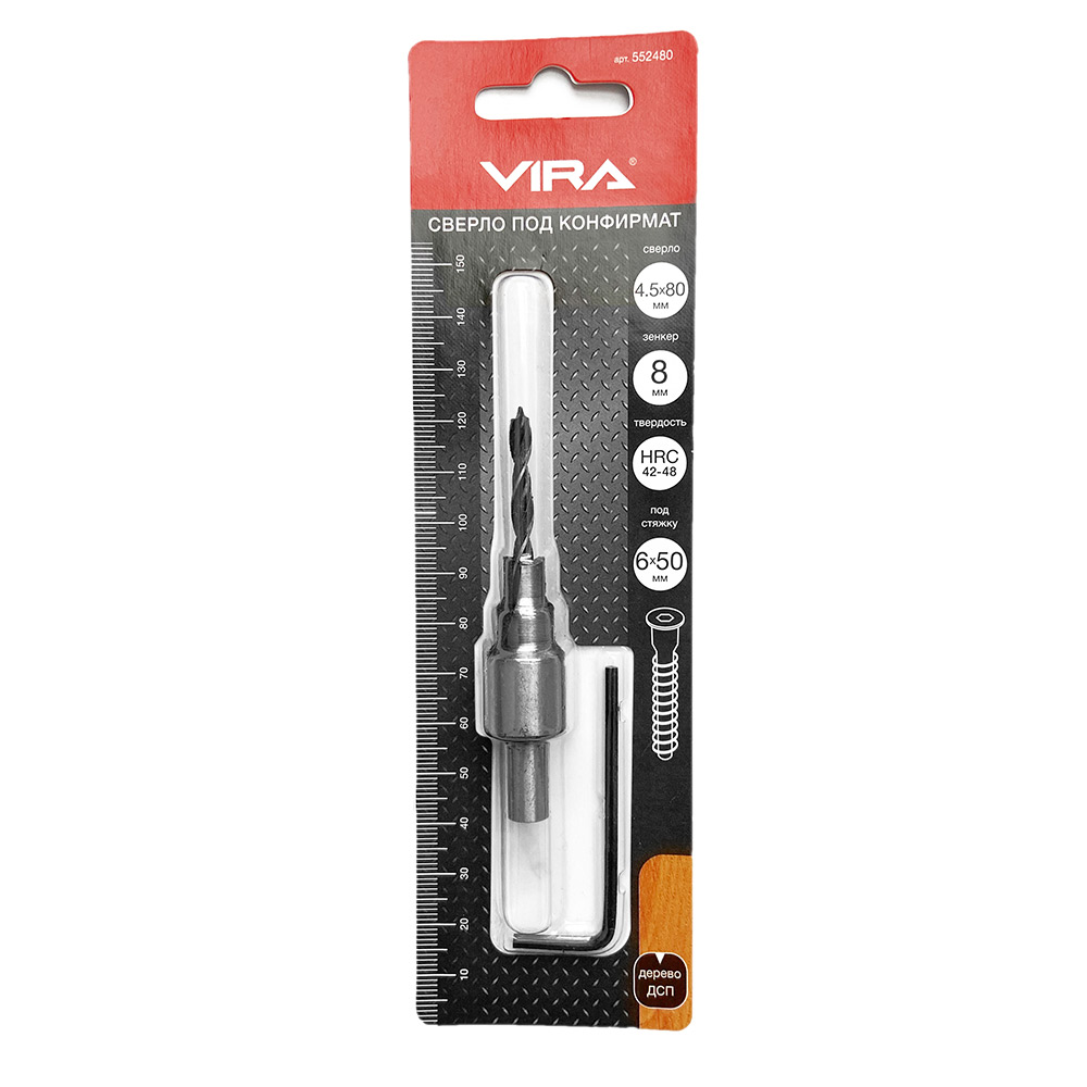 Сверло по дереву Vira (552480) конфирмат для мебельной стяжки 6х50 мм HCS с зенкером (1 шт.)
