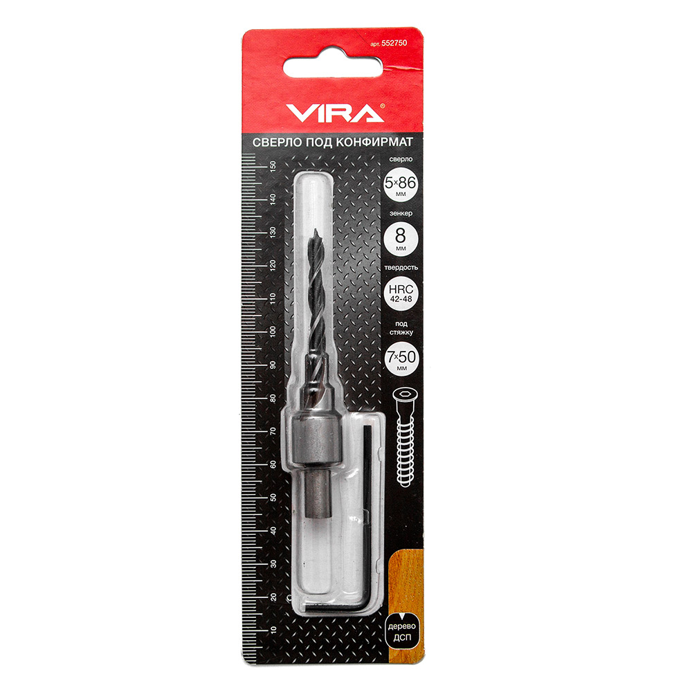 Сверло по дереву Vira (552750) конфирмат для мебельной стяжки 7х50 мм HCS с зенкером (1 шт.)