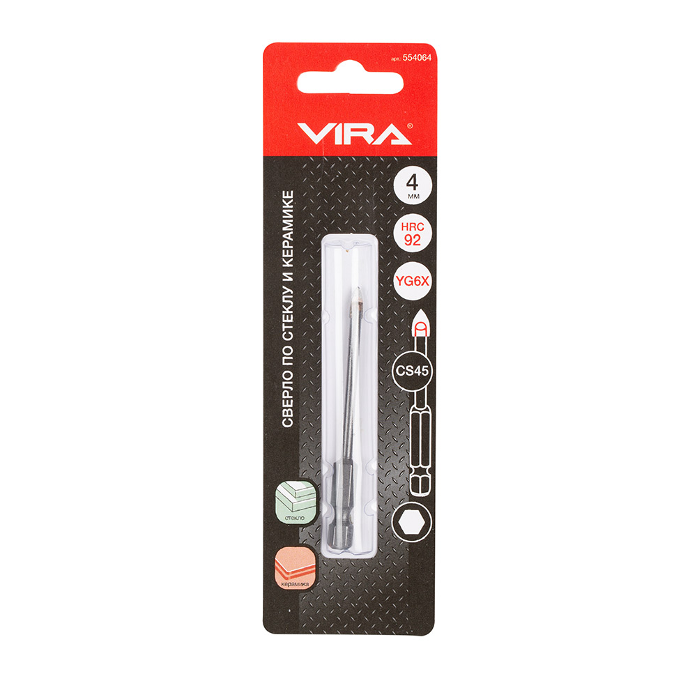 Сверло по плитке и стеклу Vira (554064) 4х75 мм CS45 (1 шт.)
