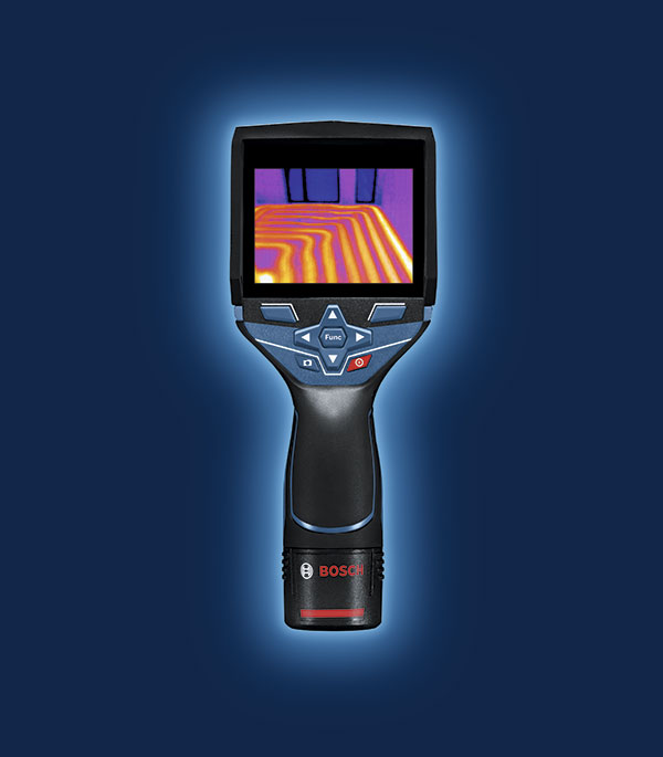 простое протоколирование и быстрый обмен данными посредством приложения Bosch Measuring Master; технология наложения изображений совмещает тепловое и реальное изображения, что упрощает локализацию процесса измерения; гибкая батарейная система позволяет применять литий-ионный аккумулятор 12 В или обычные щелочные элементы питания (адаптер для батарей в комплект поставки не входит).