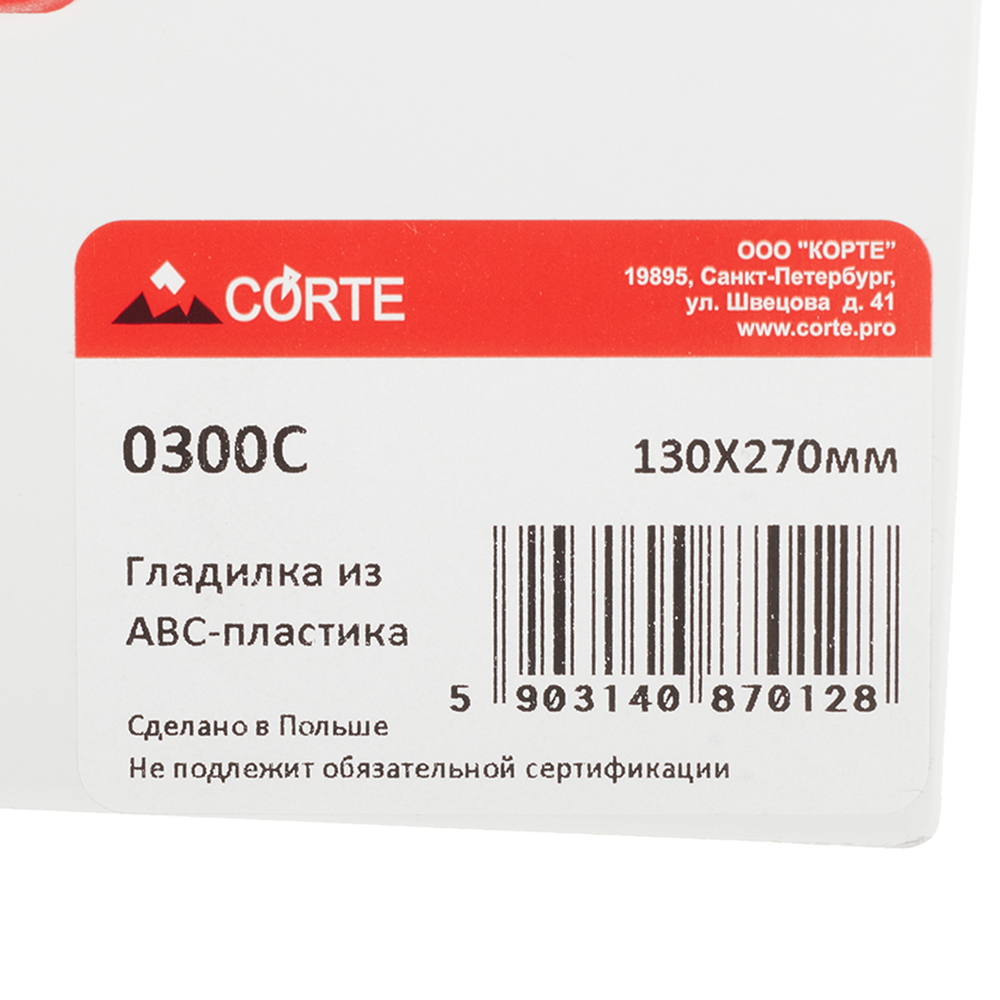 Терка пластиковая Corte 270х130 мм гладкая с облегченной ручкой