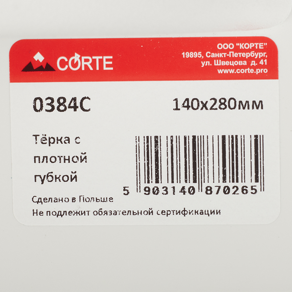 Терка пластиковая Corte 280х140 мм с мелкопористой губкой