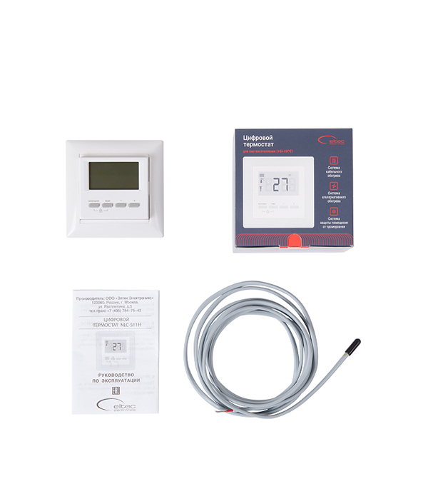 Предназначен для управления кабельными системами обогрева, системами отопления в жилых и производственных помещениях. Термостаты комплектуются внешними датчиками для контроля температуры. Корпус стандартный встраиваемый для установки в стеновую коробку диаметром 60 мм. Датчик температуры – внешний.