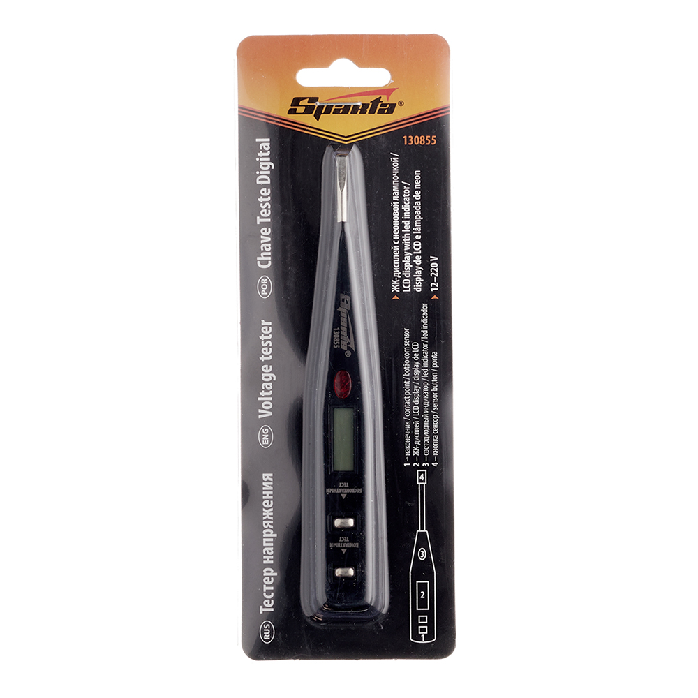 Предназначена для определения наличия напряжения в электрических сетях, проверки состояния и полярности аккумуляторов и батареек, проверки провода на наличие разрыва, обнаружения микроволнового и электромагнитного излучения.rnВ полностью изолированную плоскую ручку из пластмассы встроен жидкокристаллический дисплей, показывающий диапазон регистрируемого напряжения.rnОснащен встроенной лампой-индикатором, которая загорается при касании наконечником отвертки контакта, находящегося под напряжением.rnИмеет соответствие по допуску DIN VDE 0680 Teil 6 04.77 и евростандарта CE.