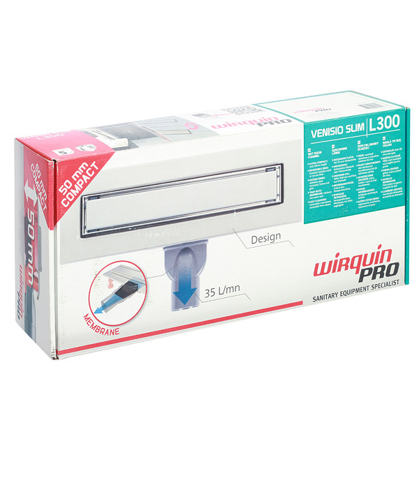 Трап горизонтальный Wirquin Слим с сухим затвором 300х40 мм решетка из нержавеющей стали линейный с сифоном