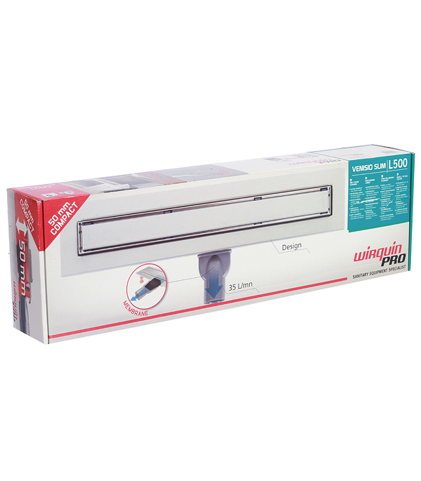 Предназначен для организации слива воды из душевых и ванных комнат. rnСверхплоский трап – высота всего 50 мм. Трапы Слим идеальны для установки в душевых зонах благодаря небольшим габаритам.rnСифон с сухим затвором – силиконовая мембрана гарантирует 100 % защиту от неприятных запахов.rnУдобство обслуживания – мембрана вынимается и доступна сверху для прочистки, а также оснащена фильтром для волос.rnРегулируемые по высоте ножки, а также специальные вставки для регулировки высоты решетки.rnУниверсальное решение – 2 вида установки сливной решетки – с отделкой из нержавеющей стали или под плитку.rnВ комплекте идет гидрополотно для периферийной гидроизоляции.