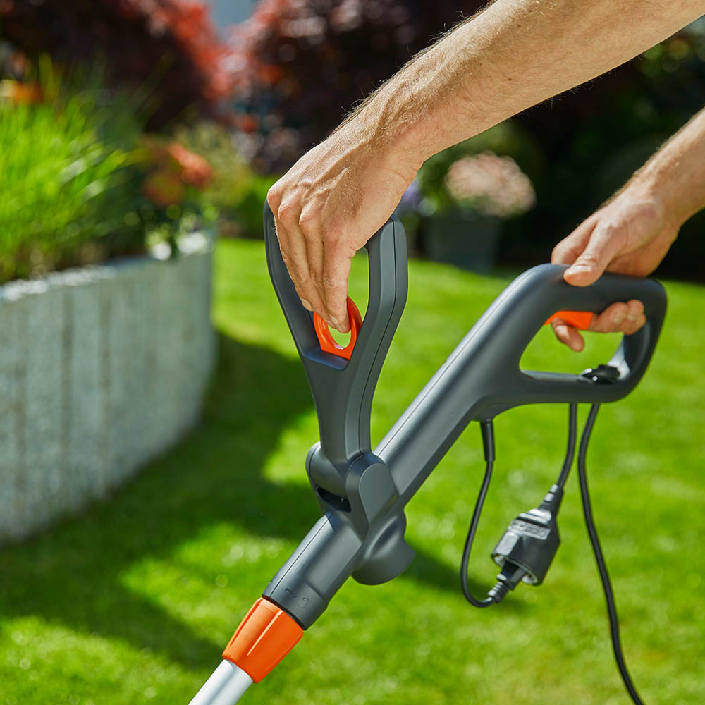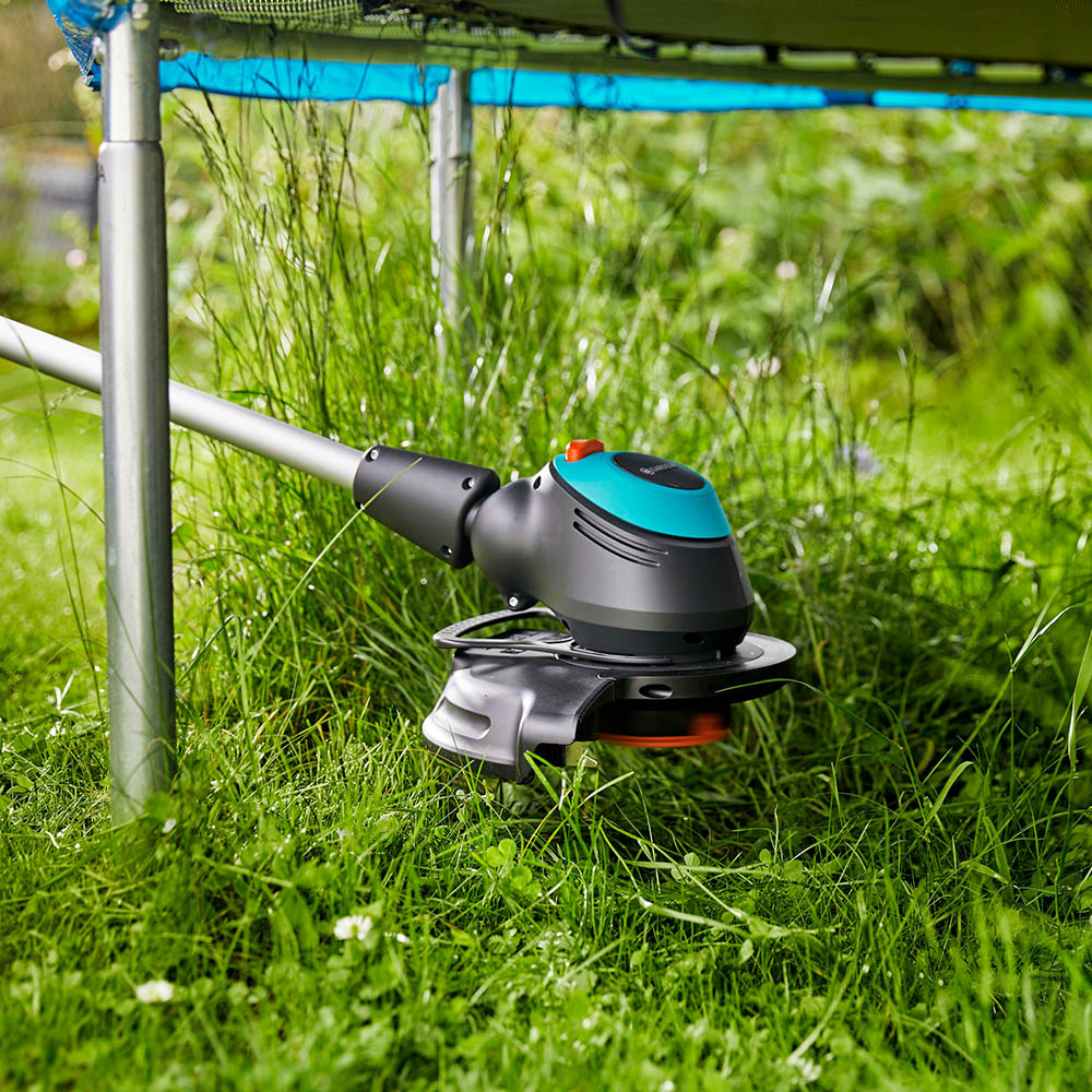 Легкий триммер GARDENA EasyCut 450/25 чрезвычайно прост в эксплуатации и особенно удобен при обработке протяженных кромок газона и кошении травы в труднодоступных местах.rnНоминальная мощность электромотора 450 Вт, что обеспечивает высокую производительность. А с полуавтоматической подачей лески вы всегда будете уверены, что производительность вашего триммера на высоте.rnЛегко регулируемая рукоятка удлиненной формы гарантирует комфорт рабочего положения и эргономичность.rnТелескопическая штанга настраивается под рост пользователя.rnУгол наклона штанги относительно режущего блока регулируется, что упрощает кошение в труднодоступных местах, например, под садовыми скамейками.rnПри кошении вблизи клумб и цветников может быть установлено бампер для защиты растений, предотвращающее повреждение цветов.rnБлагодаря блокиратору выключателя предотвращается непреднамеренный запуск инструмента.rnПервичная сборка не требует применения инструментов. Диаметр кошения составляет 250 мм.