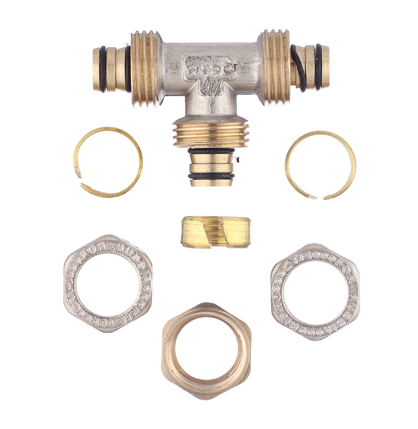 Предназначен для разветвления потока воды на два направления, а именно для соединения методом обжима трех металлопластиковых труб диаметром 16 мм.