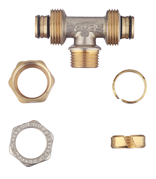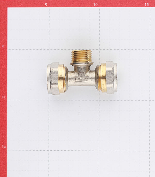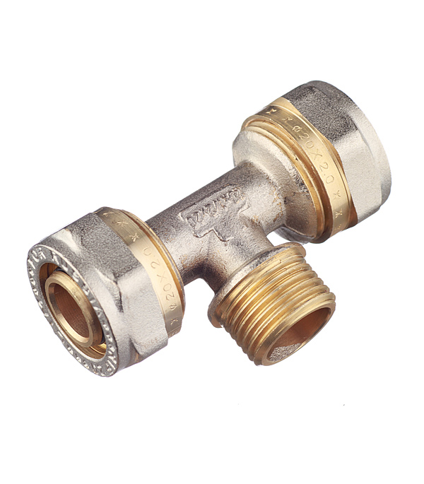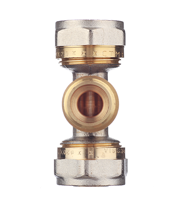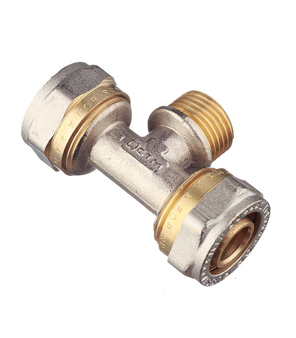Предназначен для разветвления потока воды на два направления. Имеет два выхода для соединения металлопластиковых труб диаметром 20 мм методом обжима и один выход с наружной резьбой 1/2(16 мм).