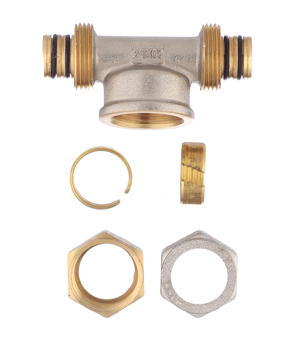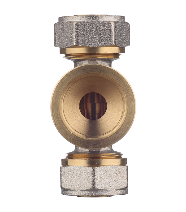 Предназначен для разветвления потока воды на два направления. Имеет два выхода для соединения металлопластиковых труб диаметром 20 мм методом обжима и один выход с внутренней резьбой 3/4(20 мм).