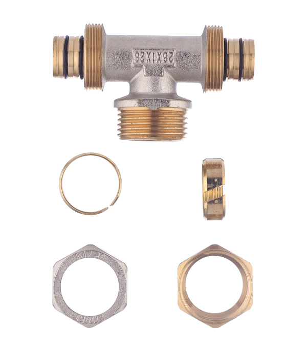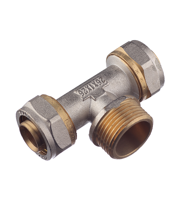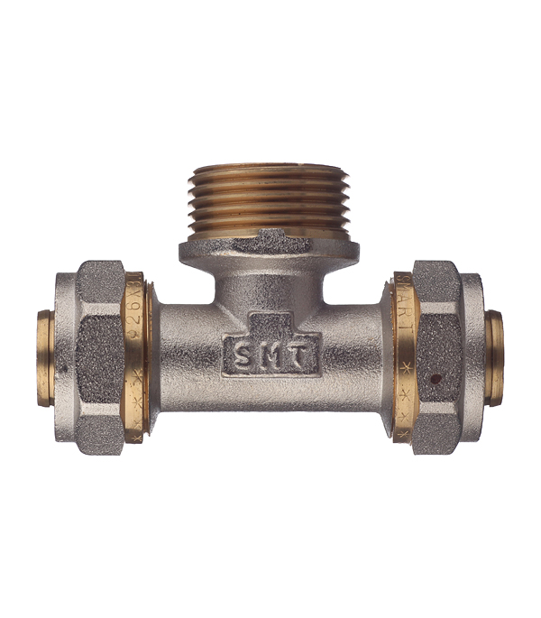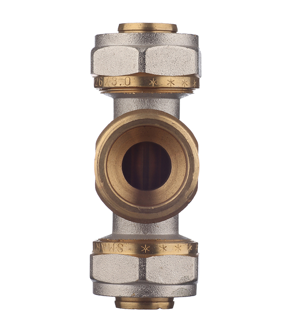 Предназначен для разветвления потока воды на два направления. Имеет два выхода для соединения металлопластиковых труб диаметром 26 мм методом обжима и один выход с наружной резьбой 1(25 мм).