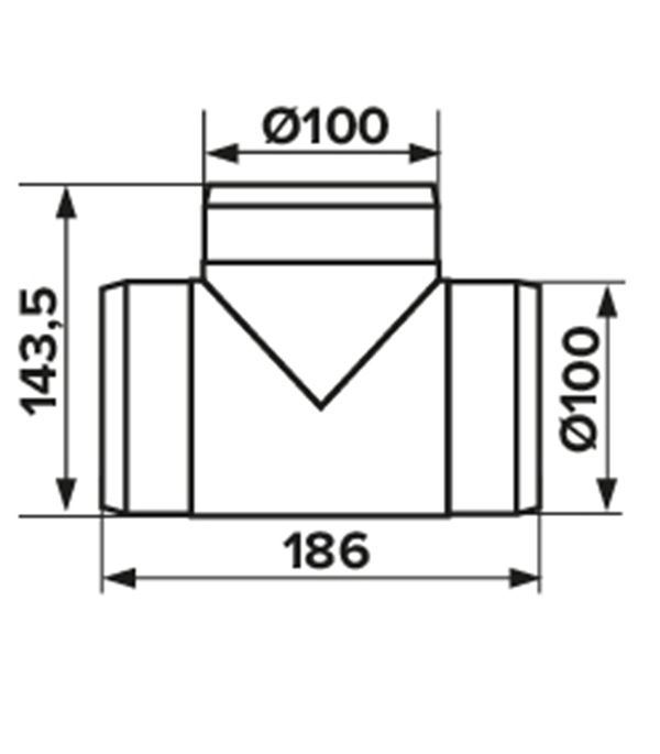 Тройник для круглых воздуховодов ERA пластиковый d100 мм 90°