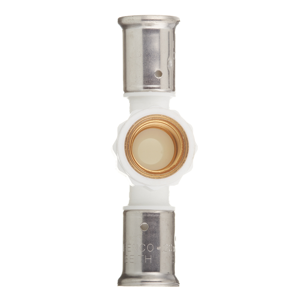 Тройник Henco (13PKW-200420) 20(пресс) х 1/2 ВР(г) х 20(пресс) PVDF белый