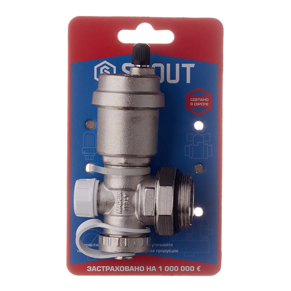 Тройник коллекторный Stout (SMS-1000-010001) 1с автоматическим воздухоотводчиком и дренажным вентилем