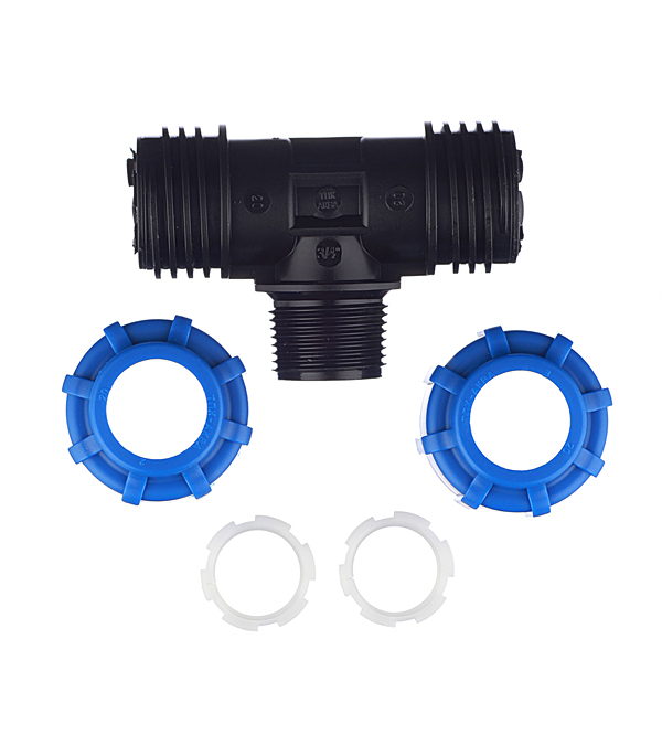 Предназначен для разветвления потока воды на два направления.rnИмеет два выхода для соединения труб ПНД диаметром 20 мм и один выход с наружной резьбой 3/4(20 мм).
