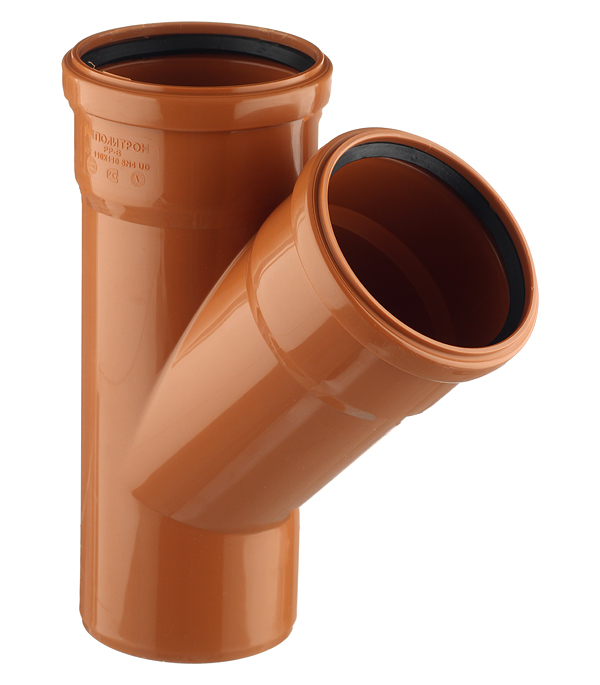 Предназначен для разветвления потока воды на два направления в одной плоскости.rnИспользуется с трубами канализационными наружными диаметром 110 мм.rnОбеспечивает отвод на 45º.