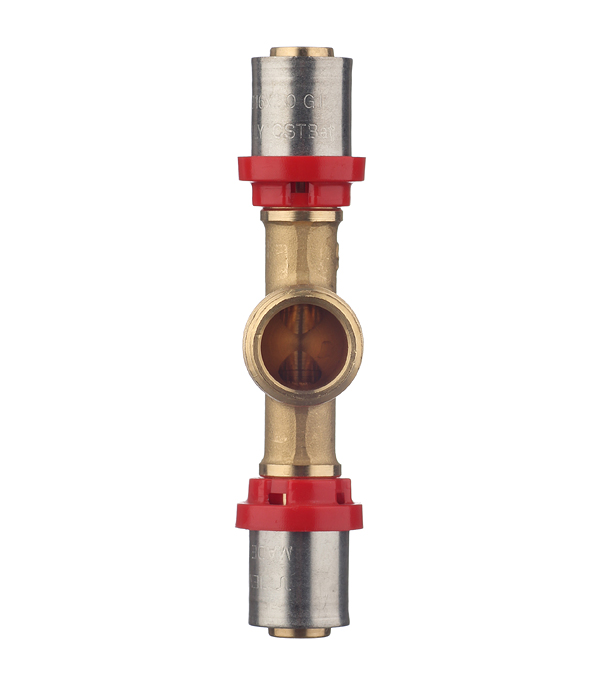 Предназначен для разветвления потока воды на два направления. Имеет два выхода для соединения металлопластиковых труб диаметром 16 мм методом опрессовки и один выход с наружной резьбой 1/2(16 мм).