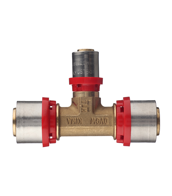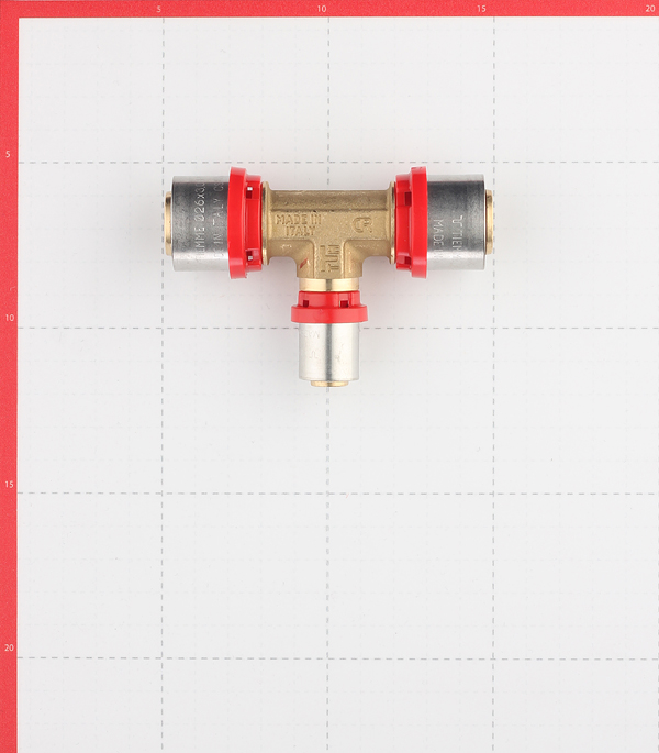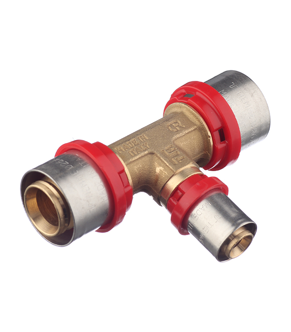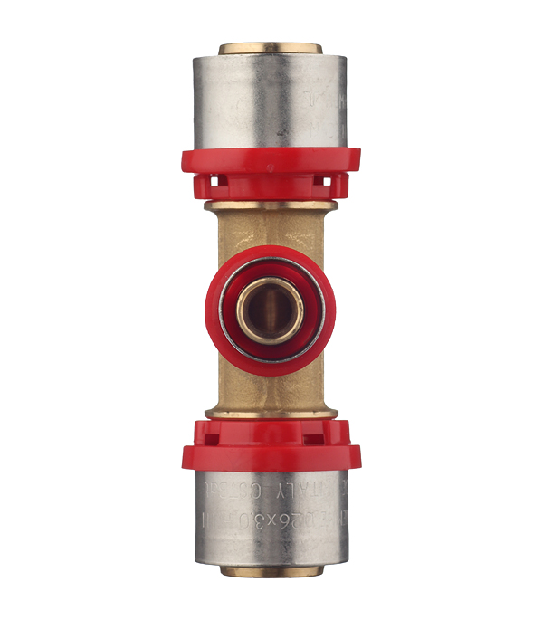 Предназначен для разветвления потока воды на два направления, а именно для соединения методом опрессовки двух металлопластиковых труб диаметром 26 мм с трубой диаметром 16 мм.