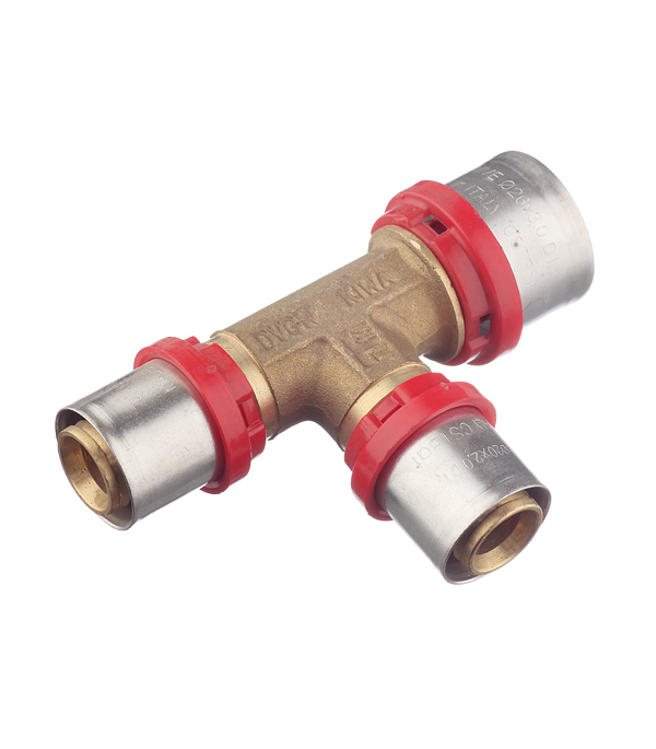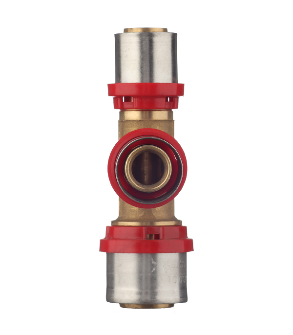 Предназначен для разветвления потока воды на два направления, а именно для соединения методом опрессовки двух металлопластиковых труб диаметром 20 мм с трубой диаметром 26 мм.