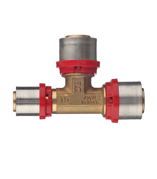 Предназначен для разветвления потока воды на два направления, а именно для соединения методом опрессовки двух металлопластиковых труб диаметром 26 мм с трубой диаметром 20 мм.