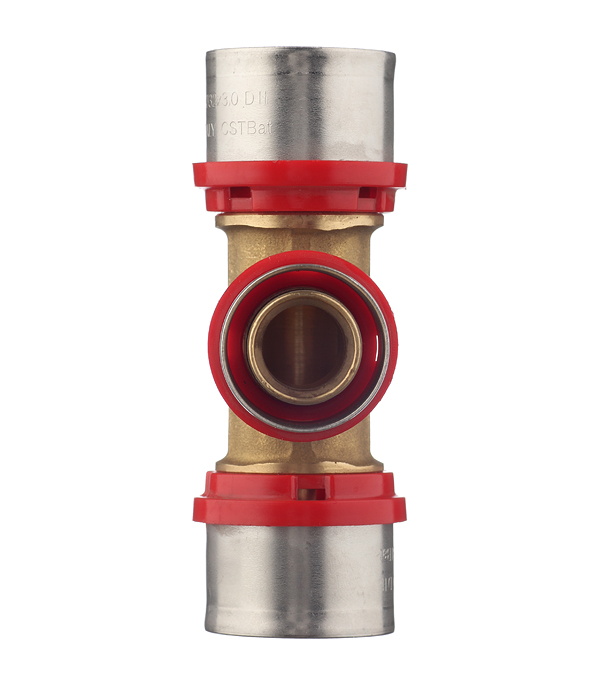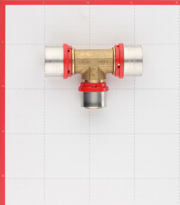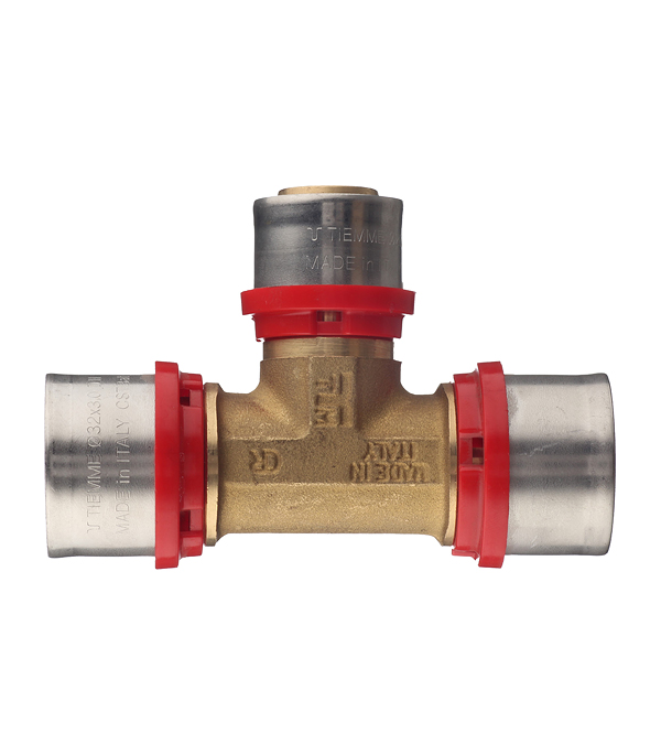 Предназначен для разветвления потока воды на два направления, а именно для соединения методом опрессовки двух металлопластиковых труб диаметром 32 мм с трубой диаметром 26 мм.