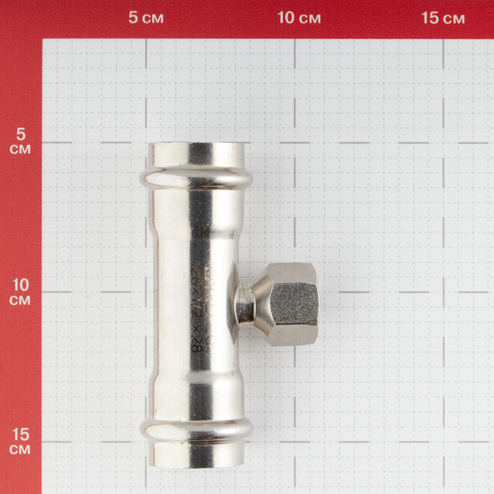 Тройник VALTEC (VTi.932.I.280428) 28 мм х 1/2 ВР(г) х 28 мм нержавеющая сталь