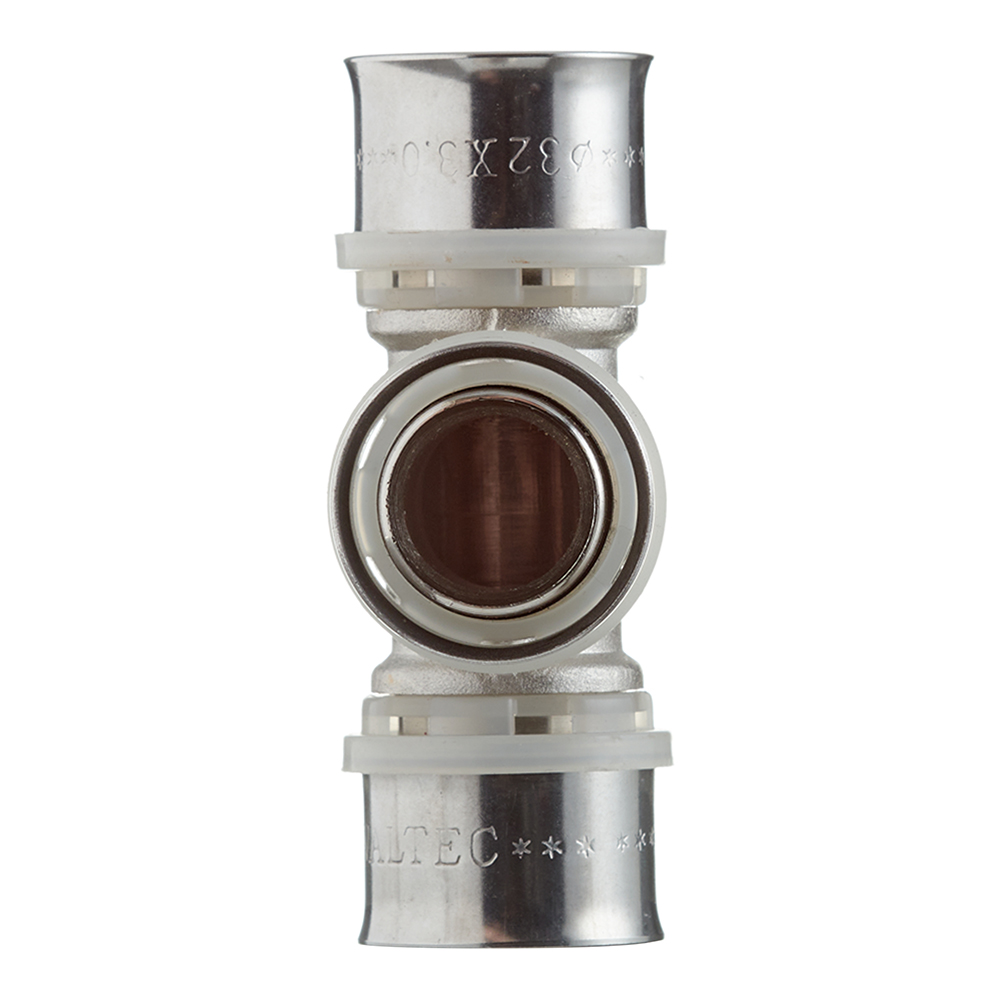 Предназначен для соединения трех труб – металлопластиковых либо из сшитого полиэтилена. Монтаж фитинга производится пресс-инструментом с насадкой «ТН»