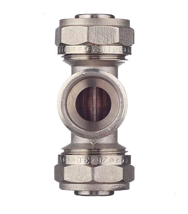 Предназначен для разветвления потока на два направления. Имеет два выхода для соединения металлопластиковых труб диаметром 26 мм методом обжима и один выход с наружной резьбой 1. Может использоваться в системах питьевого и хозяйственного водопровода, горячего водоснабжения, отопления, а также на технологических трубопроводах, транспортирующих жидкости, не агрессивные к материалам фитинга.