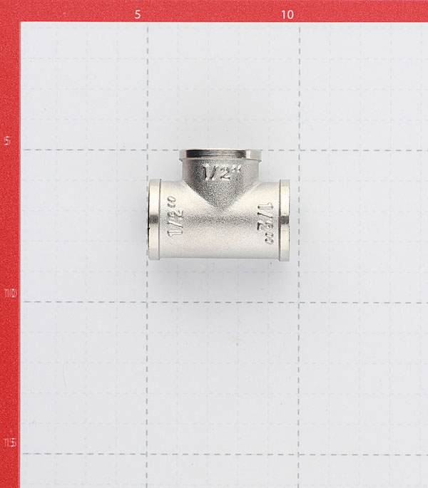 Предназначен для разветвления потока воды на два направления. Имеет с каждой стороны внутреннюю резьбу диаметром 1/2(16 мм). Резьба – внутренняя, цилиндрическая трубная по ГОСТу 6357 (ISO 228, EN 10226), совместимая также с наружной конической трубной резьбой по ГОСТу 6211 (ISO R7).