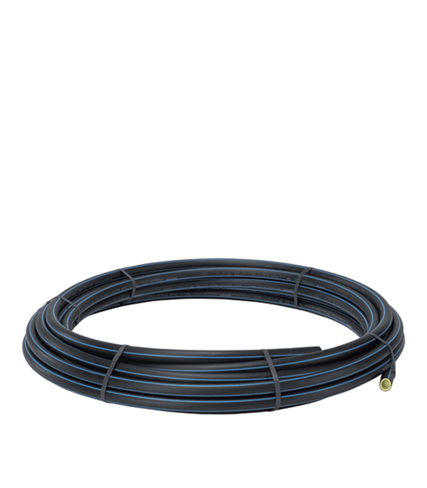 Предназначена для создания трубопроводов транспортирующих воду, в том числе для хозяйственно-питьевого водоснабжения при температуре от 0 до + 40 °C.rnТрубы имеют черный цвет и четыре продольные полосы для идентификации транспортируемой среды или применения (синий цвет-водоснабжение; желтый-газоснабжение).rnВ бухте 100 м.