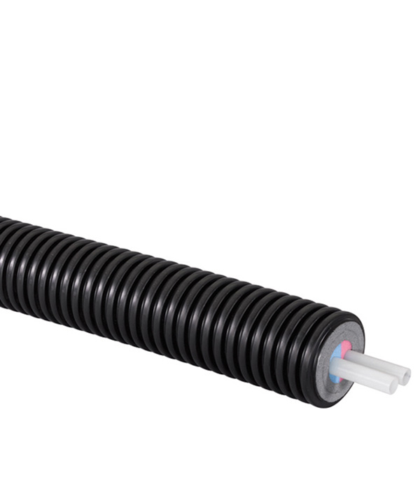 Предназначена для систем тепло – и холодоснабжения, горячего водоснабжения по ТУ 2248-001-27431685-2015 и EN 15632-3, с самокомпенсацией температурных удлинений. С уменьшенным диаметром наружного кожуха за счет уменьшенной толщины теплоизоляции. Предназначена для подземной бесканальной прокладки. Две несущих трубы: подающая и обратная, выполнены из сшитого полиэтилена РЕ-Ха, серия S5,0. Имеют антидиффузионный слой от проникновения кислорода EVOH (сополимер этилена и винилового спирта) для предотвращения коррозии элементов системы и соответствуют требованиям ISO 17455 по кислородопроницаемости. Несущие трубы встроены в двухцветную сердцевину теплоизоляции, выполненную в форме „собачьей кости“, для исключения путаницы и предотвращения теплообмена между трубами. Параметры несущих труб: максимальная рабочая температура Тмах = 95°С, максимальное рабочее давление 6 бар. Срок службы 50 лет при температурных режимах, указанных в ГОСТ 32415-2013. Срок службы 50 лет при температурных режимах, указанных в ГОСТ 32415-2013, таблица 5, классы 1, 2, 4 и 5. Теплоизоляция многослойная, устойчивая к старению, эластичная, выполнена из вспененного сшитого полиэтилена PE-X с закрытыми порами (водопоглощение <1%). Защитный гофрированный кожух изготавливается из полиэтилена высокой плотности HDPE. Соответствует требованиям стандарта ATV-DVWK-A 127 для установки на участках с интенсивным транспортным движением SLW 60 (грузовые автомобили до 60 тонн).