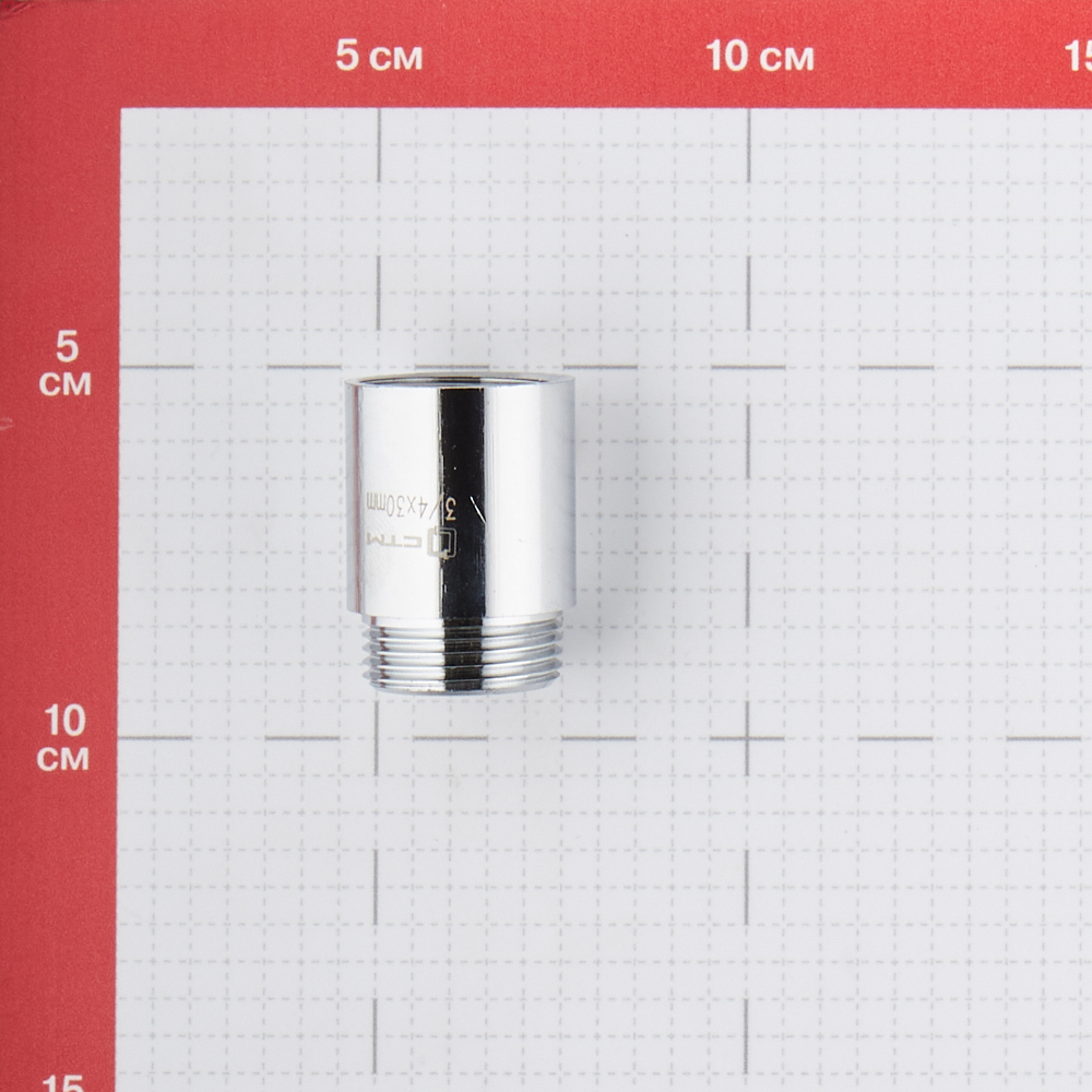 Предназначен для удлинения резьбового соединения на 30 мм. С одной стороны имеет внутреннюю резьбу 3/4(20 мм), с другой стороны наружную 3/4(20 мм).